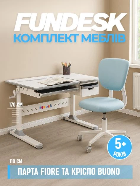 Комплект парта-трансформер Fundesk Fiore Grey та ергономічне крісло Fundesk Buono Blue