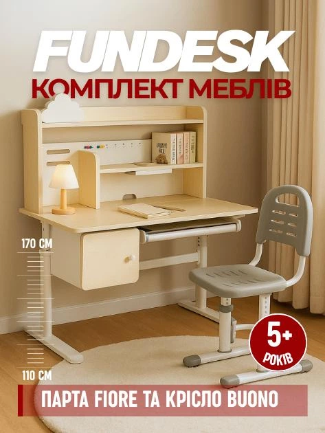 Комплект меблів парта FunDesk Ginepro Grey та крісло FunDesk SST3L Grey