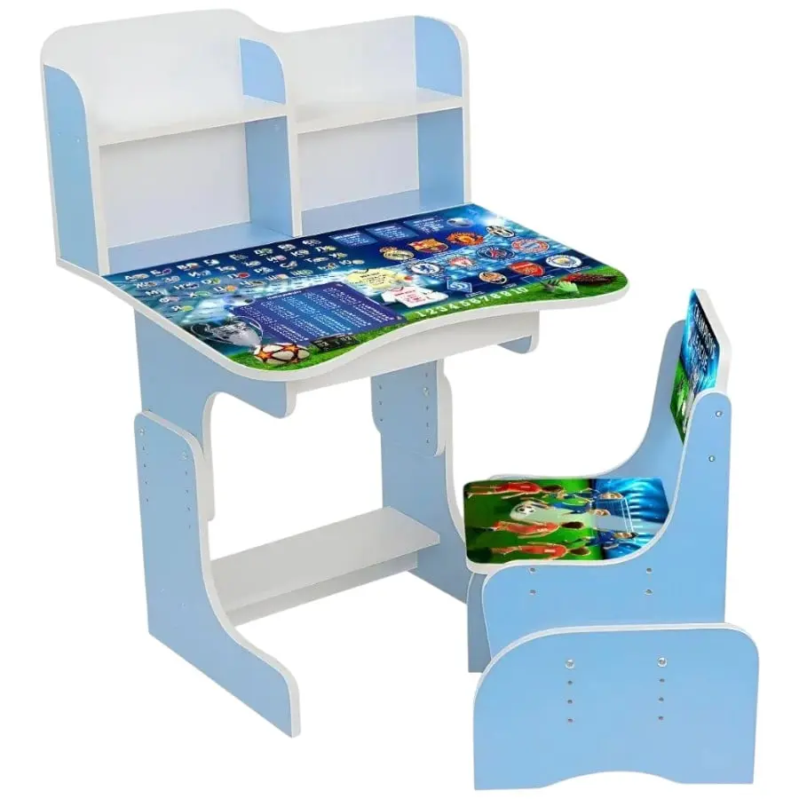 Дитяча парта Футбол ПШ051 ЛДСП 69×45 см зі стільцем і пеналом блакитна