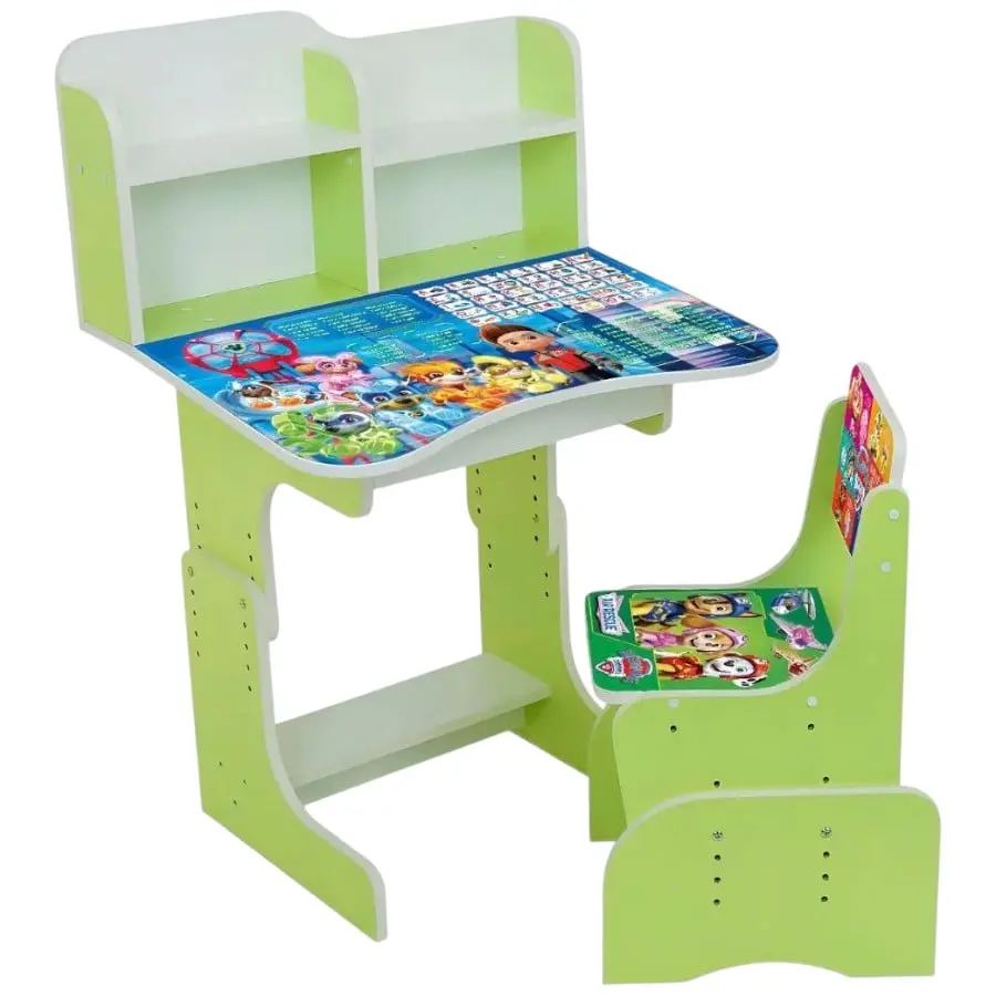 Дитяча парта Цуценята ПШ 050 1 ЛДСП 69×45 см з пеналом +1 стілець зелена