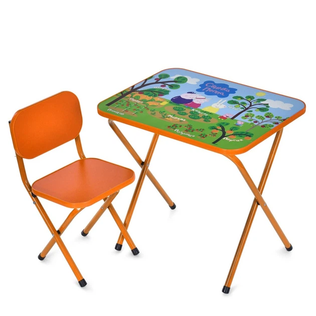 Складаний дитячий столик зі стільцем помаранчевий парта для ігор та творчості в дитячій кімнаті (559275)
