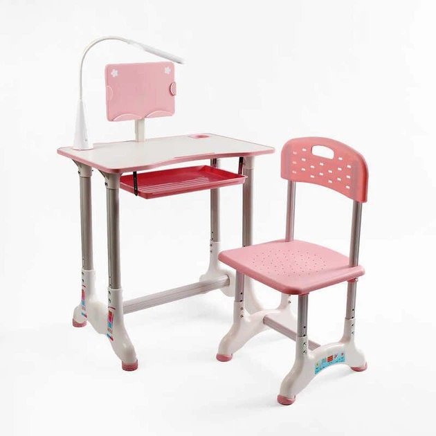 Дитяча парта зі стільчиком J-30822, рожева: регульована висота та нахил, з лампою
