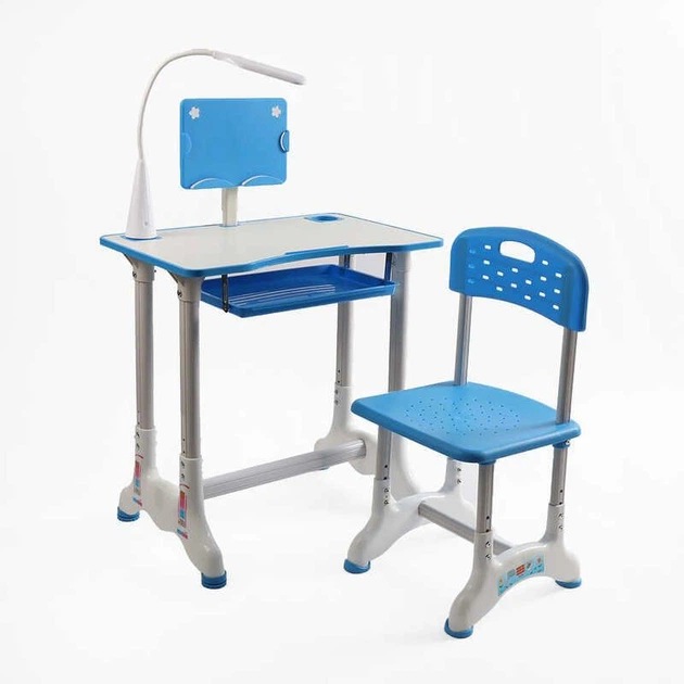Дитяча парта зі стільчиком J-41526, синя: регульована висота та нахил, з лампою