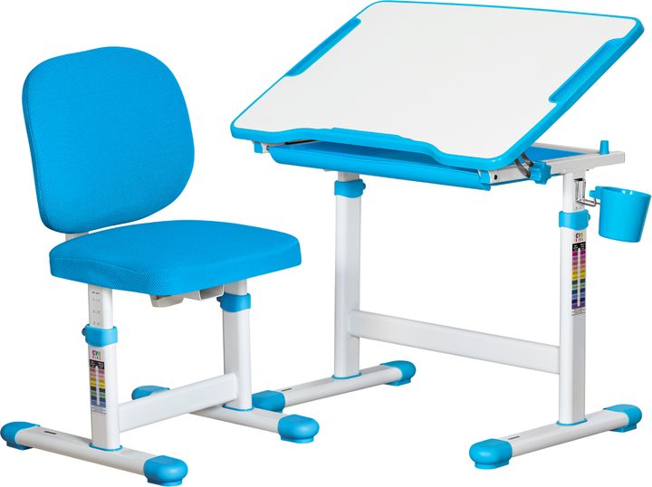 Дитяча парта "Школяр" ЛДСП 70x47 см з регульованим стільчиком молочний з синім (СТ/ШК1)