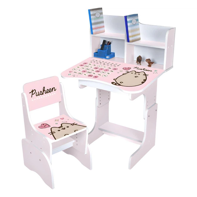 Дитяча парта N 2071-17-7A "Пушин рожевий" з англ.+ укр.абеткою та стільчиком, сакура