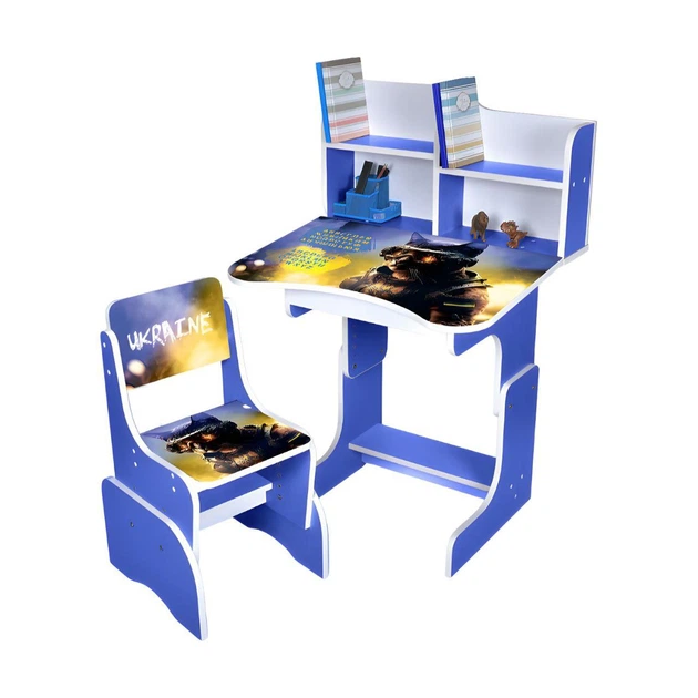 Парта N 2071-2-1 «Кіт-воїн» зі стільчиком та интерактивною англійсько-українською абеткою абеткою