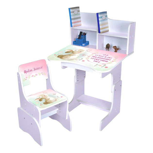 Дитяча парта N 2071-15-6 "Привіт зайченя" з укр.абеткою та стільчиком, лаванда