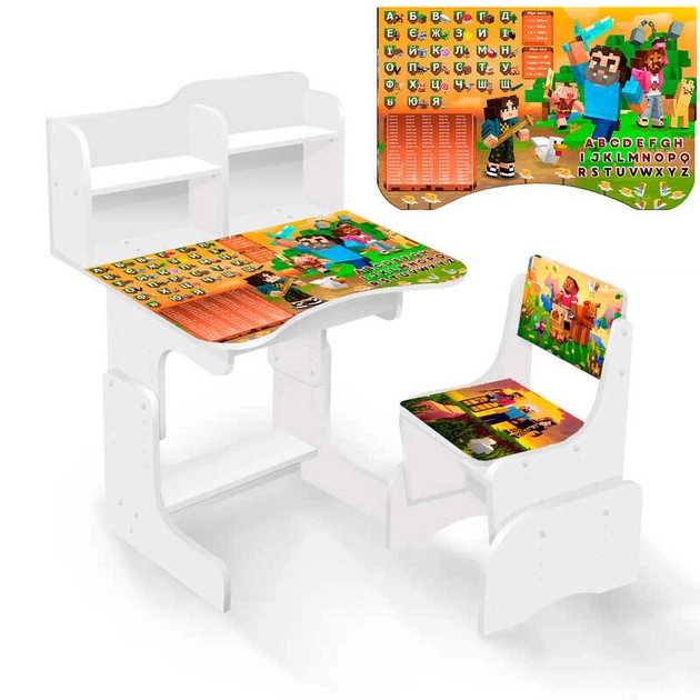 Парта шкільна "Блочний світ 2" ПШ 062 ЛДСП, колір біла, 69*45 см, + 1 стілець, з пеналом