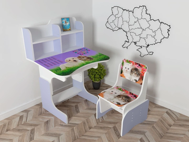 Дитяча парта Шкільна Розтишка зі стільцем Цуценя з Кошеням Фіолетова