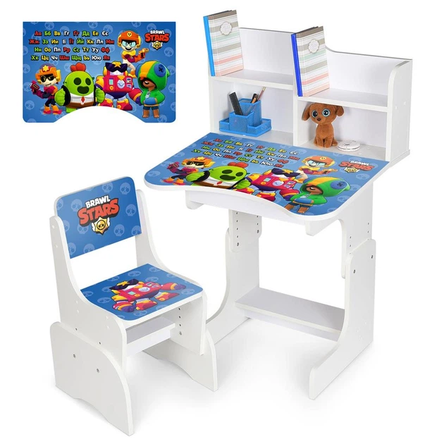 Дитяча регульована парта зі стільцем розтишка "BRS" український алфавіт, біла, N 2071-12-1