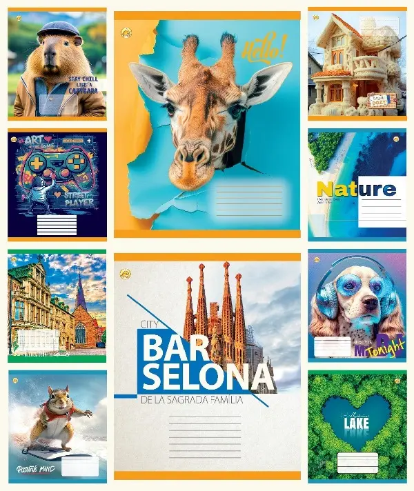 Зошити учнівські 24 аркуша клітинка Тверда CAPYBARA, 20 шт. в упаковці