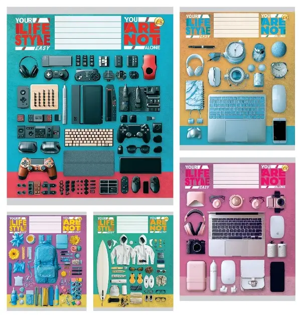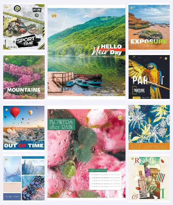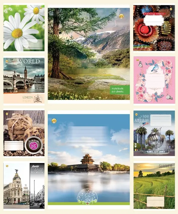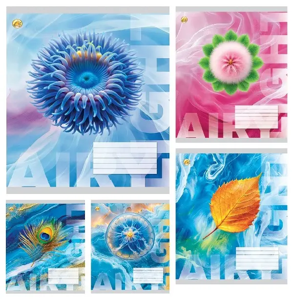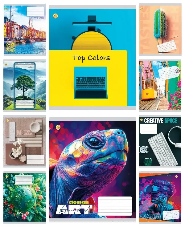 Зошити учнівські 60 аркушів клітинка Тверда 31601 Мікс 6, 10 шт. в упаковці