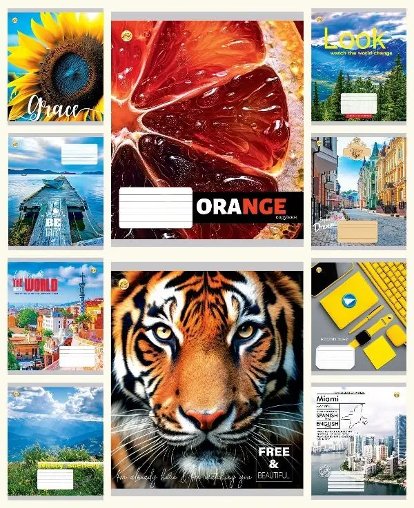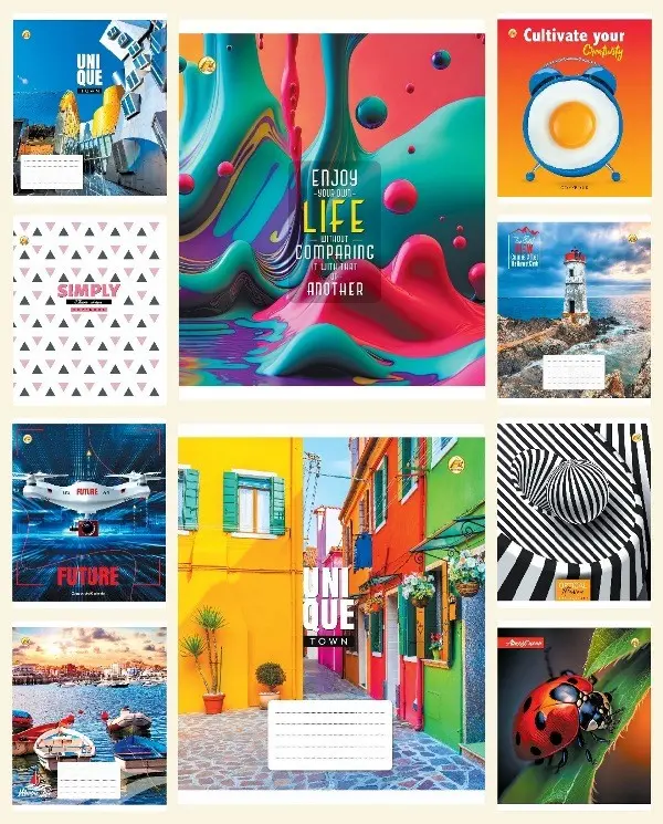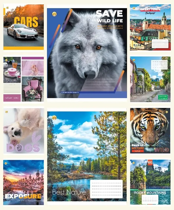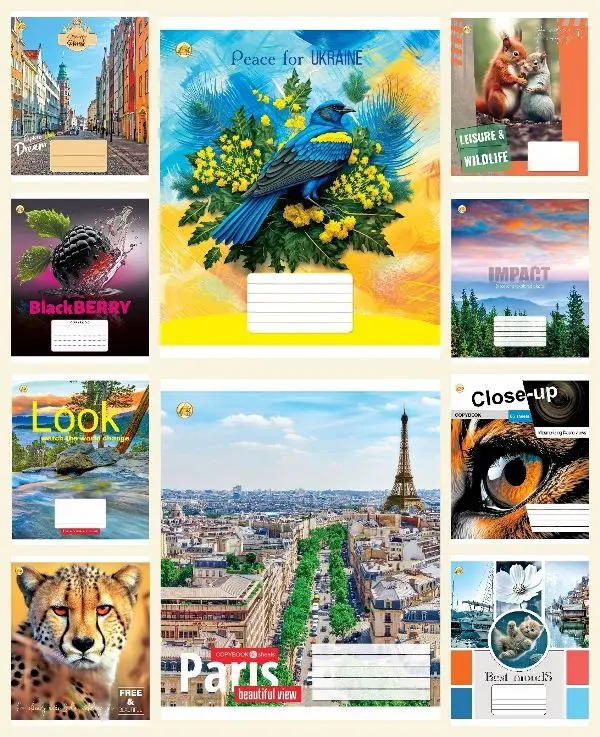 Зошити учнівські 60 аркушів клітинка Тверда 31604 Мікс 7, 10 шт. в упаковці