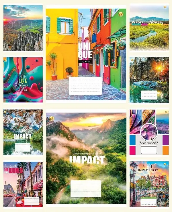 Зошити учнівські 60 аркушів клітинка Тверда 41605 Пейзаж, 10 шт. в упаковці