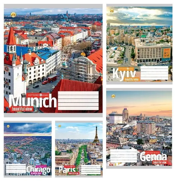 Зошити учнівські 60 аркушів клітинка Тверда 41606 Місто, 10 шт. в упаковці