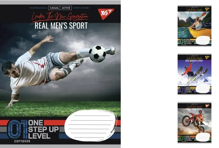 Зошити учнівські 18 аркушів лінія. YES Real sport, 25 шт. в упаковці