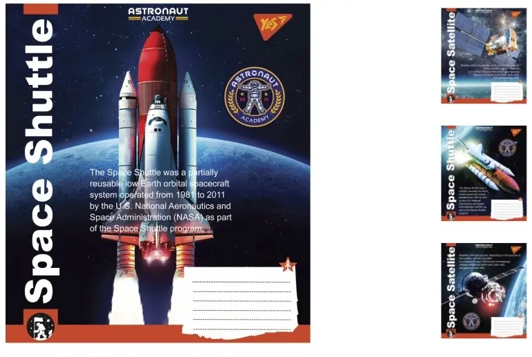 Зошити учнівські 18 аркушів клітинка. YES Astronaut academy, 25 шт. в упаковці