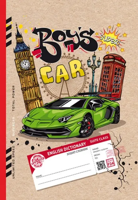 Зошит-словник для запису іноземних слів, тверда обкладинка, матова ламінація, вибірковий УФ-лак, 40 аркушів