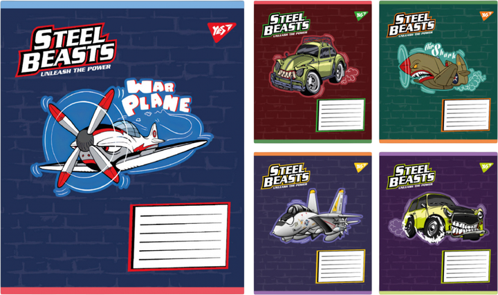 Набір зошитів учнівських YES Steel Beasts A5 12 аркушів у лінію x 25 шт (4823092293084)