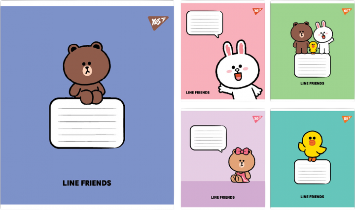 Набір зошитів учнівських YES Line Friends Stylish A5 12 аркушів у косу лінію x 25 шт (4823092292452)