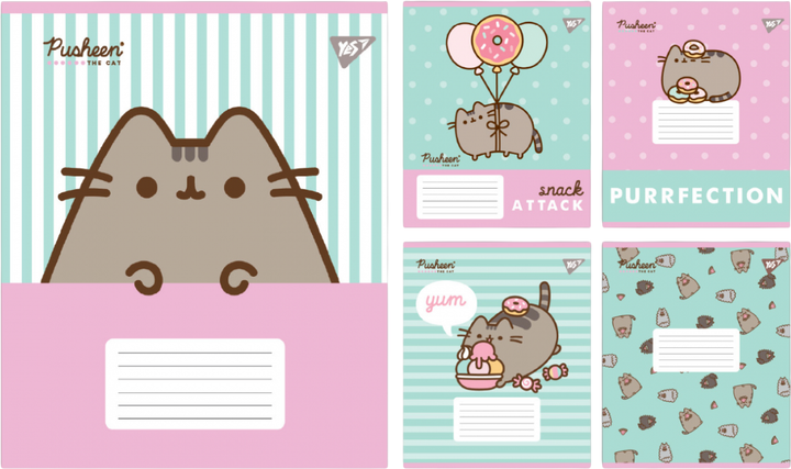 Набір зошитів учнівських YES Pusheen The Cat A5 12 аркушів у лінію x 25 шт (4823092292117)