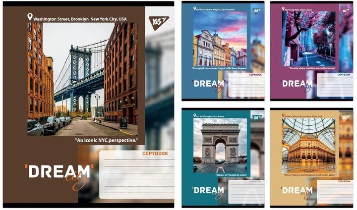 Набір зошитів учнівських загальних YES Dream City А5 96 аркушів у лінію 5 шт (4823092293060)