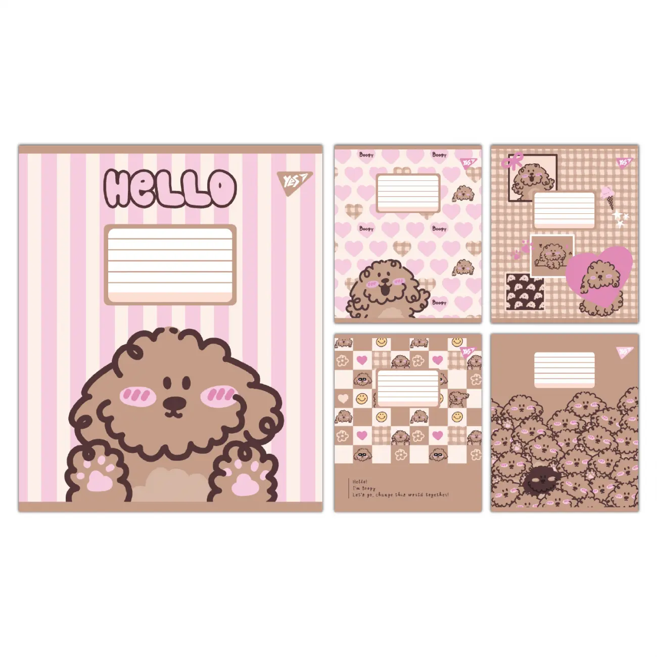 Зошити учнівські 12 аркушів клітинка Yes Hello Puppy, 25 шт. в упаковці