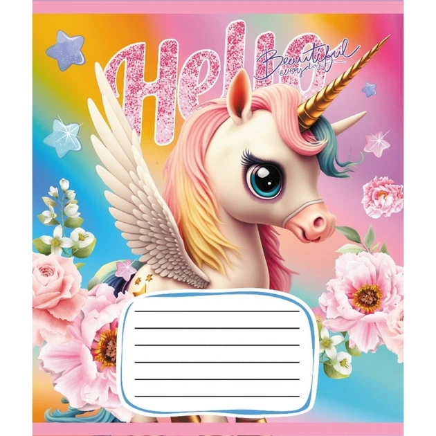 Зошит учнівський "Єдинороги" 012-510065C-5 в косу лінію, 12 аркушів