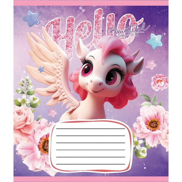 Зошит учнівський "Єдинороги" 012-510065C-4 в косу лінію, 12 аркушів