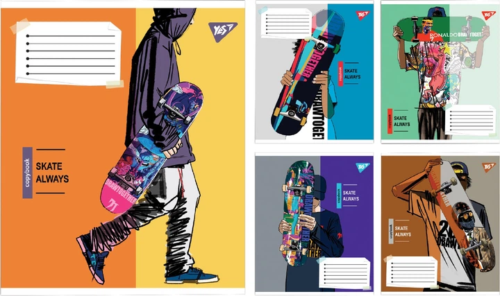 Набір зошитів учнівських загальних Yes Skate is Always А5 48 аркушів у клітинку 10 шт (767814)