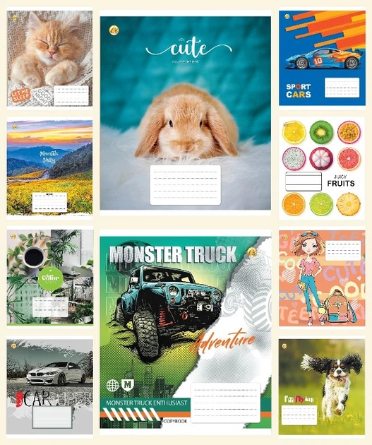Зошити учнівські 12 аркушів лінія Тверда ТЕ22105 12ЛВ1 МІКС, 25 шт. в упаковці