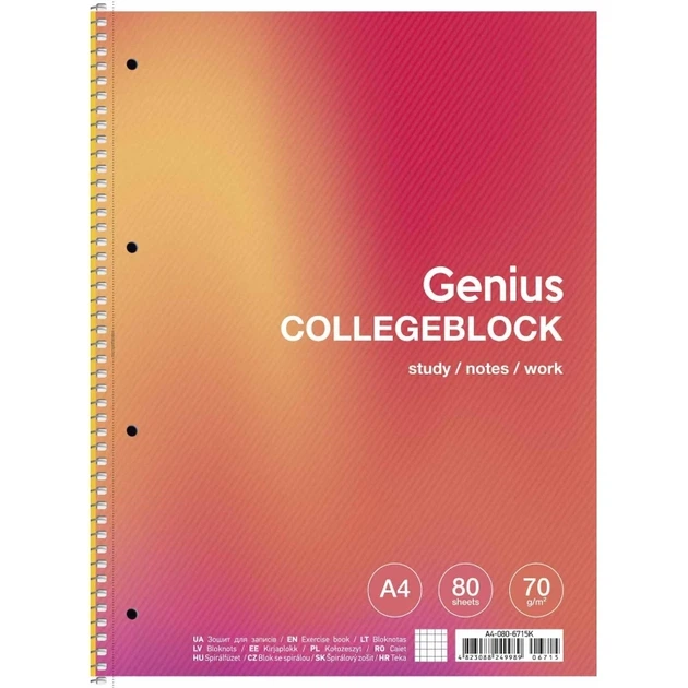 Коледж-блок Школярик А4+, 80 аркушів 70 г/м2, клітинка, на спіралі, Student