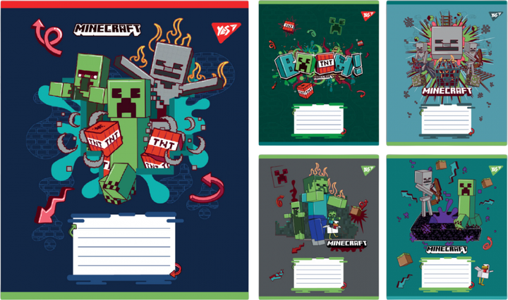 Набір зошитів учнівських YES Minecraft Arrows A5 18 аркушів у клітинку x 25 шт (4823092291714)