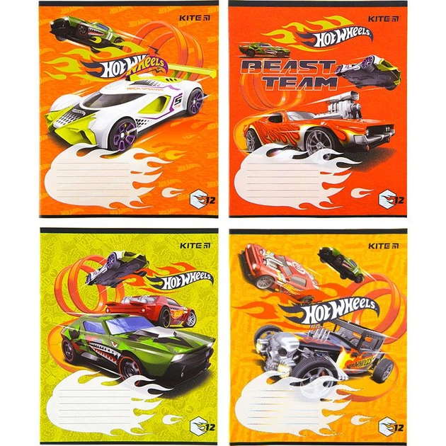 Зошит шкільний Kite Hot Wheels 12 аркушів, коса лінія, 25 шт