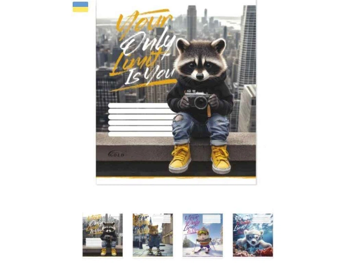 Зошит в клітинку GOLD BRISK 18арк. 25шт/уп ТВ-48 Стильнi звiрята мегаполiса