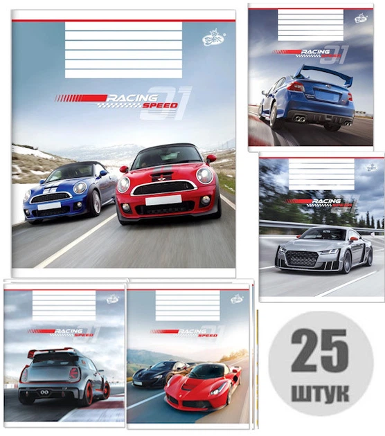 Зошит учнівський 12 аркушів клітинка "Бріск" №2531 На швидкостi (НАБОР 25 шт.)