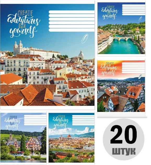 Зошити учнівські 60 аркушів лінія Yes Ukraine travel, 10 шт. в упаковці