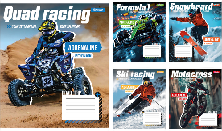 Зошити учнівські 96 аркушів лінія. 1В The offroader 5 шт. в упаковці
