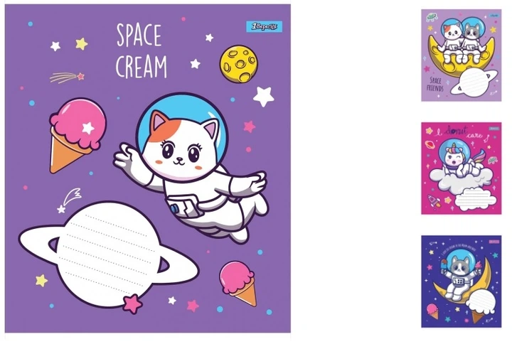 Зошити учнівські 12 аркушів лінія. 1В Space friends, 25 шт. в упаковці