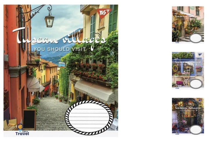Зошити учнівські 60 аркушів лінія. YES Tuscan villages, зошит дя записів 10 шт. в упаковці
