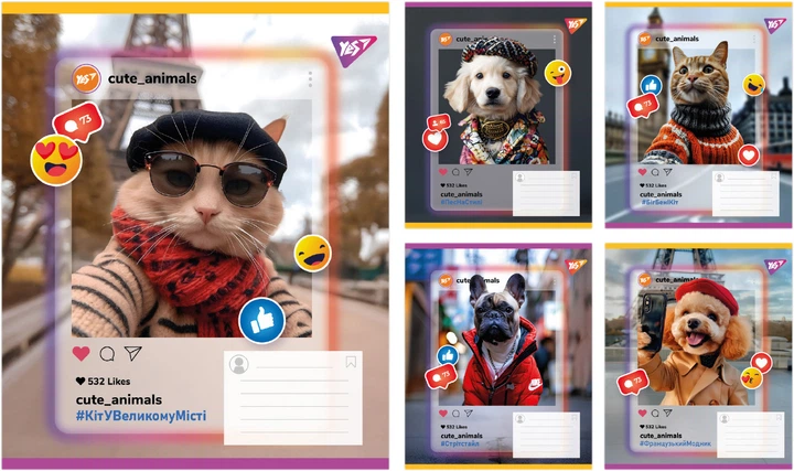 Набір зошитів учнівських YES Cute animals А5 36 аркушів у клітинку х 15 шт (767731) (4823092293299)