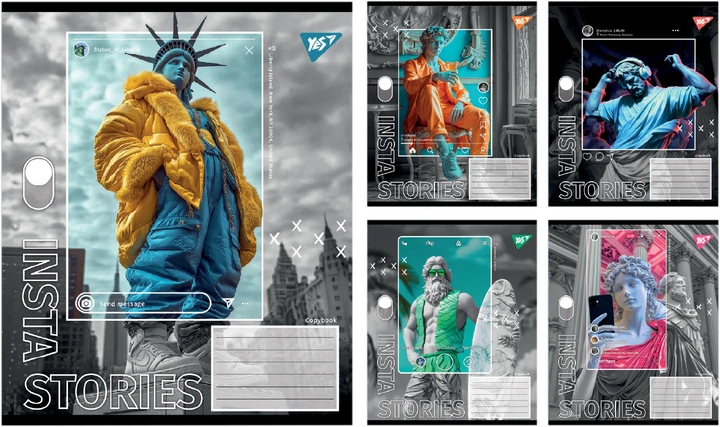Набір зошитів учнівських YES Insta Storys А5 36 аркушів у клітинку х 15 шт (767943) (4823092294432)