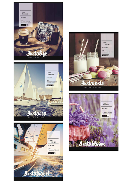 Набір 5 шт, зошит загальний, Follow & enjoy (УФ-лак). Зошит Star у клітинку 96 арк. 3389 4820006476489