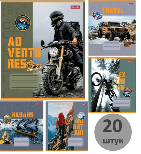 Зошит учнівський 24 аркуша в лінію, 1Вересня, №767305, "Menhobby" шкільний зошит (набір 20 штук)