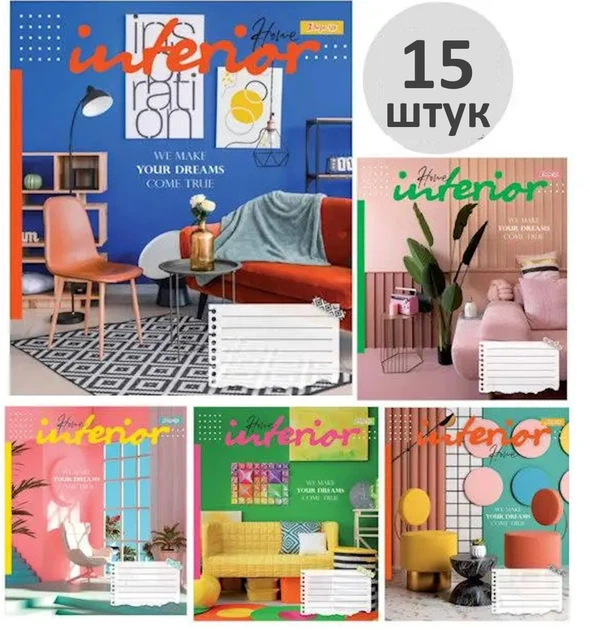 Зошит учнівський 36 аркушів, клітинка 1 Вересня /766403/ "Interior" (набір 15 шт.)