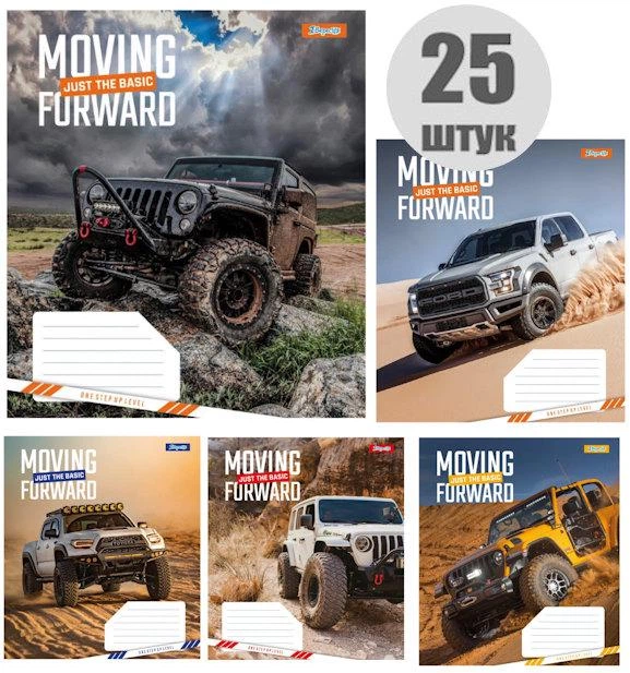 Зошит учнівський 18 аркушів клітинка 1 Вересня /767240/ "Moving forward"(набір 25 шт.)
