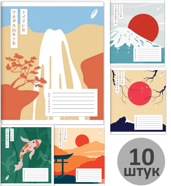 Зошит учнівський 96 аркушів клітинка , Бріск, ТВ-6, 1014 Японський стиль, газетний папір 55 г/м2 (набір 10 штук)