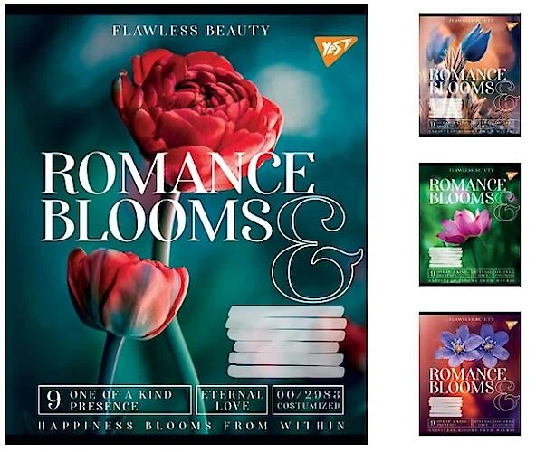 Тетрадь А5 36 аркушів лінія Romance blooms (15 шт. в упак мікс) YES (766432)