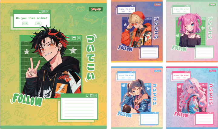 Набір зошитів учнівських 1 Вересня Follow Anime A5 18 аркушів у клітинку x 25 шт (4823092297242)
