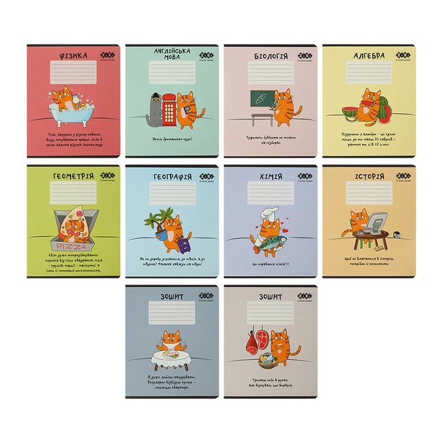 Зошит ZiBi набір учнівських CUTE CAT 36 аркушів 10 штук, 8 предметів (ZB.1731-99)
